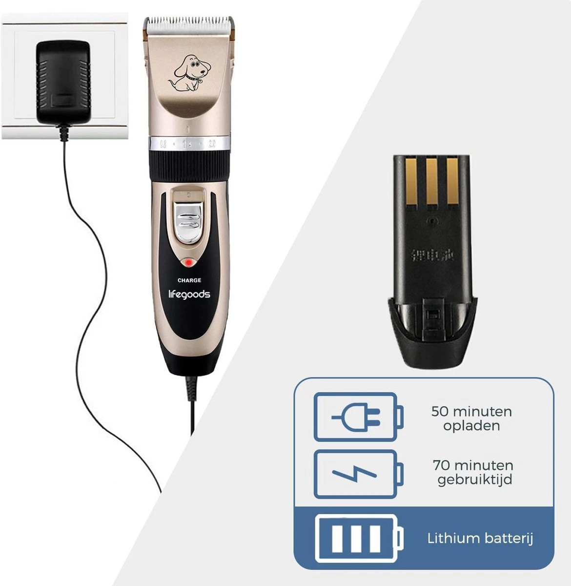 LifeGoods Hondentondeuse – Voor Katten En Honden – Complete Set – 5 Standen – Draadloos – Oplaadbaar – Goud/Zwart