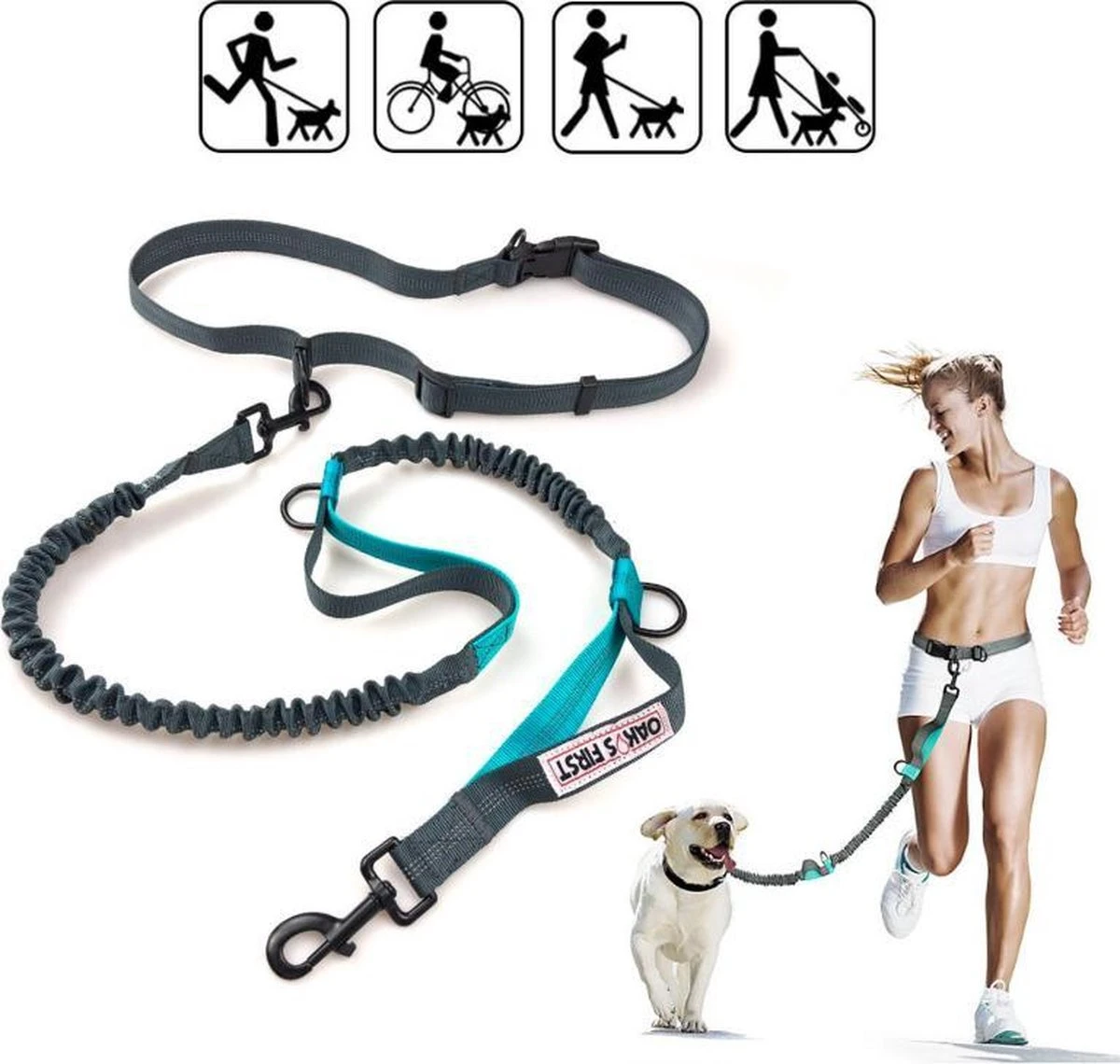Oak’s First Elastische En Diervriendelijke Looplijn Met Heupriem – Hondenriem – 150cm/210cm – Grijs